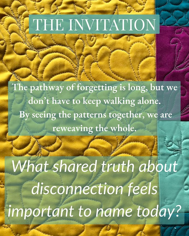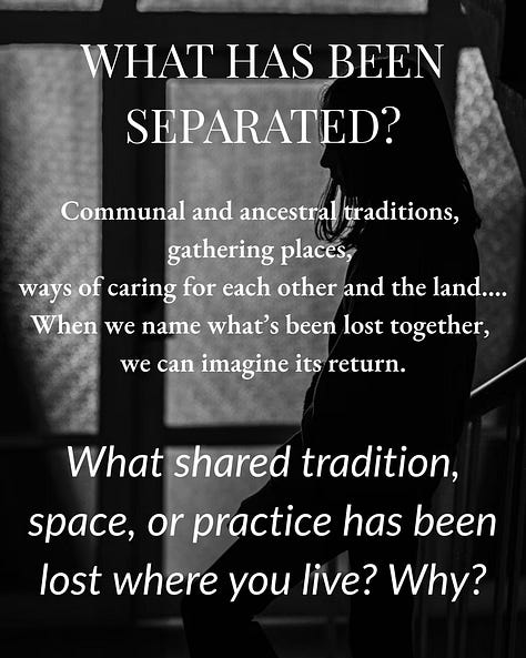 - What stories or rituals of reconnection could help us all see this more clearly?