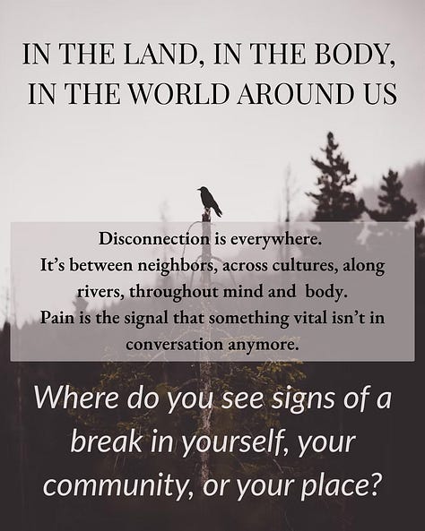 If we look at the diseases of collectives - fractured families and communities, degraded ecology - as patterns of disconnection, healing is clearly seen as the pathway to wholeness. If that’s true, how might we practice reconnecting and healing our places?